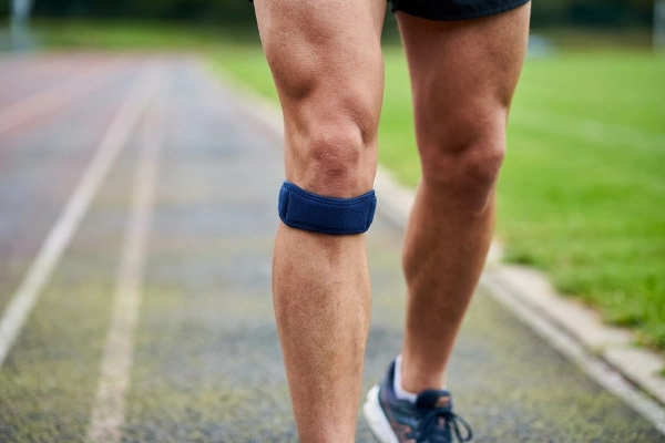 Patella strap close-up, applying targeted pressure on the patellar tendon